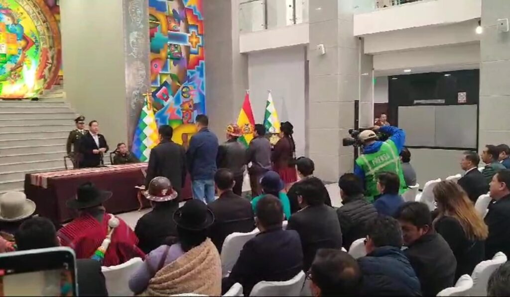 “Quiero mencionar que luego de varias reuniones que hemos tenido con diferentes organizaciones sociales, hemos escuchado a nuestras organizaciones sociales las diferentes sugerencias para mejorar, para avanzar, en esto que es nuestro gobierno nacional, que es para el pueblo boliviano al cual nunca vamos a traicionar”, dijo Arce en el acto de posesión.