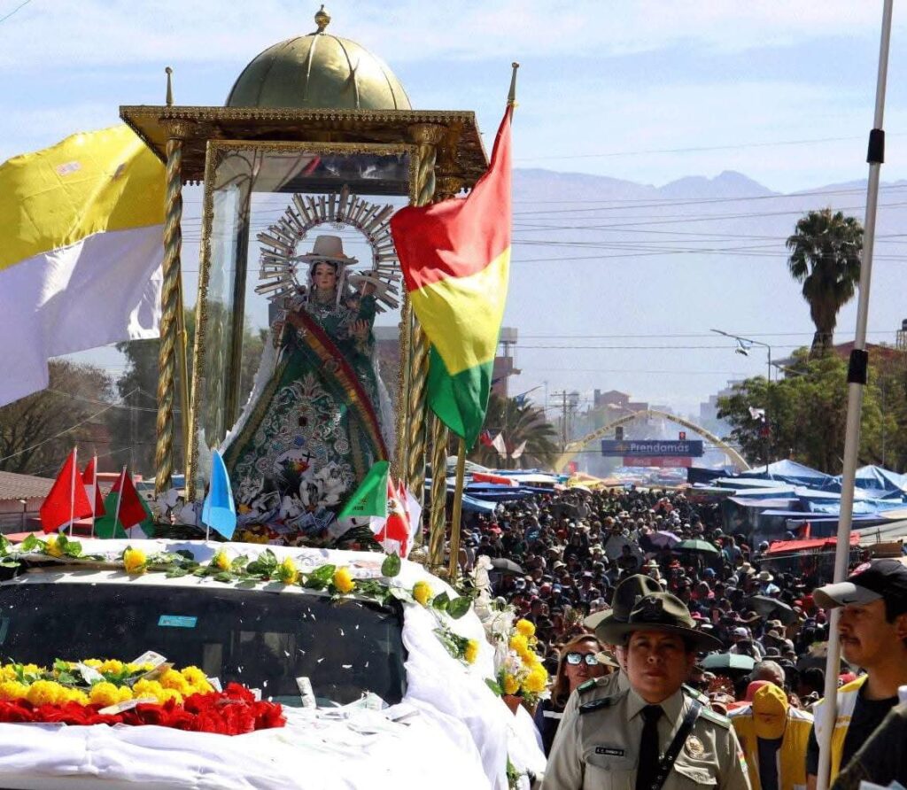 Cochabamba, Bolivia, 11 de agosto de 2025. Con fe, devoción y en un ambiente cargado de tradición, miles de peregrinos se congregaron este lunes en el cerro de Cota para participar del tradicional Calvario de Urkupiña, una de las actividades centrales en honor a la “Mamita de Urkupiña”. Familias enteras, provenientes de diferentes regiones del país e incluso del extranjero, recorrieron el sendero hacia el cerro para rendir homenaje, cumplir promesas y pedir bendiciones. Durante la jornada, los asistentes participaron de misas, oraciones y representaciones culturales, manteniendo viva una de las costumbres religiosas más antiguas de Bolivia. El Calvario de Urkupiña combina elementos de fe y cultura popular, donde además de las actividades litúrgicas, se realizan ferias artesanales y gastronómicas, así como la tradicional extracción de piedras del cerro, símbolo de compromiso y prosperidad para el año venidero. Las autoridades locales desplegaron dispositivos de seguridad, control de tránsito y servicios médicos para garantizar el desarrollo pacífico de la celebración, que cada año atrae a miles de devotos y turistas, consolidando a Urkupiña como una de las festividades marianas más importantes del país.