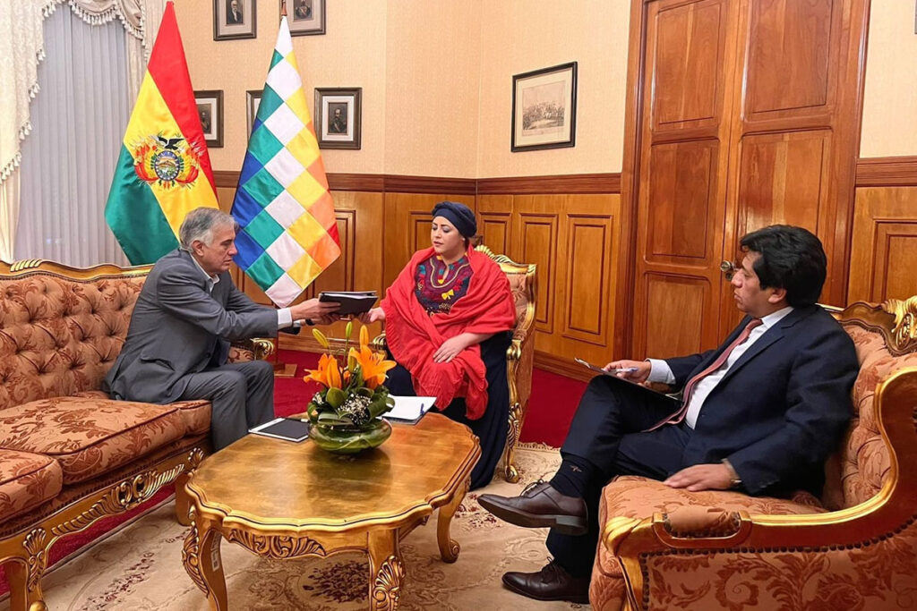 - En la reunión con el Embajador boliviano, en la que participó la canciller en funciones, María Nela Prada, el Gobierno ratificó su rechazo a las publicaciones de desinformación que circulan en torno al golpe de Estado fallido del pasado miércoles 26 de junio.