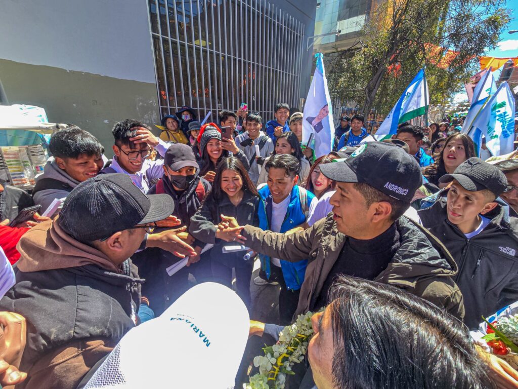 El Alto, Bolivia, 13 de agosto de 2025. Frente a la Universidad Pública de El Alto (UPEA), el candidato presidencial Andrónico Rodríguez cerró su campaña electoral en vísperas de las elecciones generales.