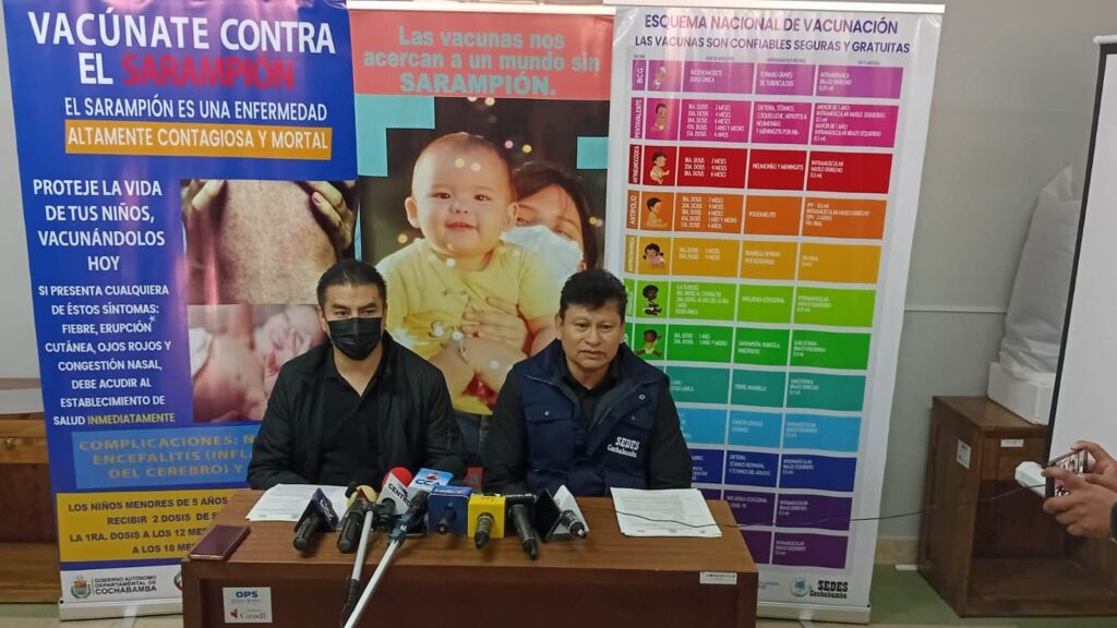 Cochabamba, 20 de julio de 2025.- Las autoridades de salud de Cochabamba confirmaron dos nuevos casos de sarampión: un bebé de tres meses del cono sur de la ciudad y una persona de 20 años del municipio de Sacaba. Ambos pacientes se encuentran estables bajo observación médica. Se han implementado medidas de bloqueo epidemiológico en las zonas afectadas para prevenir la propagación de la enfermedad. Las autoridades sanitarias instan a la población a mantenerse informada y a completar sus esquemas de vacunación.