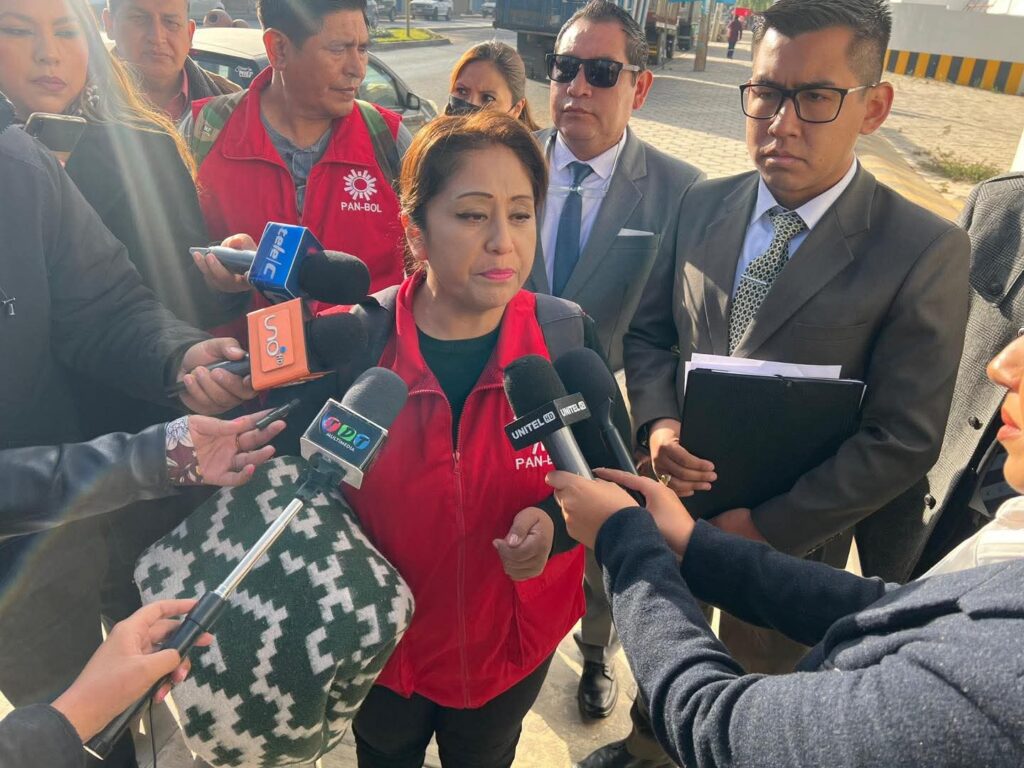 Cochabamba, Bolivia, 24 de julio de 2025. La presidenta de Pan-Bol, Ruth Nina, se presentó este jueves por la mañana ante la Fiscalía Departamental de Cochabamba, tras ser citada para brindar su declaración informativa dentro de un proceso penal abierto en su contra por los presuntos delitos de instigación pública a delinquir, amenazas y delitos electorales.