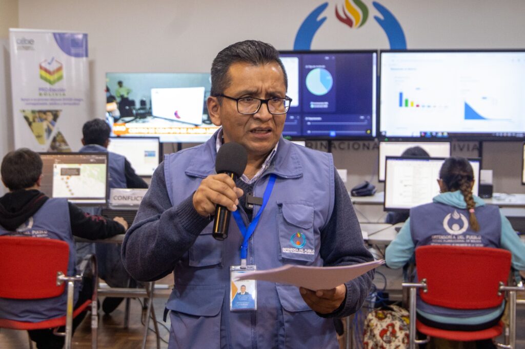 Por primera vez, la Defensoría activó un Centro de Monitoreo de Derechos Humanos con 700 voluntarios y 200 funcionarios, quienes recorrieron 900 recintos en todo el país. Este equipo registró 423 denuncias relacionadas con vulneraciones de derechos, de las cuales se resolvió un 57,5%. La mayor cantidad de casos se reportó en La Paz (163), seguida de Oruro (95) y Beni (63).