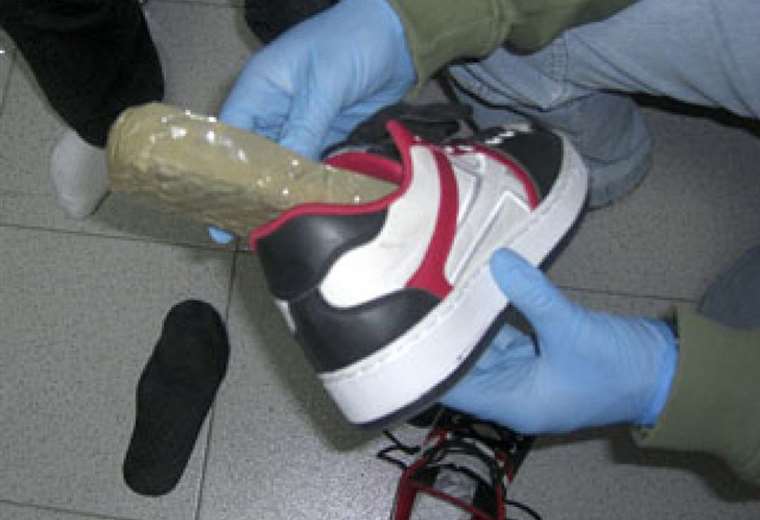 Para sorpresa de las autoridades, en el interior de un par de zapatillas deportivas encontraron hábilmente camuflados dos envoltorios, cada uno conteniendo 25 cápsulas de una sustancia blanquecina, según informó el responsable de la Fiscalía Especializada en Delitos de Narcotráfico, Felipe Mamani.