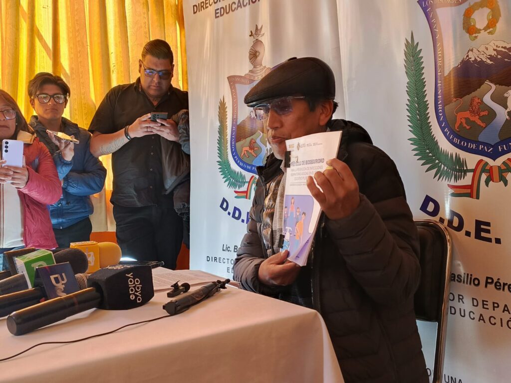 La Paz, Bolivia, 27 de mayo de 2025. El director departamental de Educación de La Paz, Basilio Pérez, descartó este martes la suspensión de clases presenciales o el paso a la modalidad virtual, pese al ingreso del frente frío que afecta a varias regiones del país.