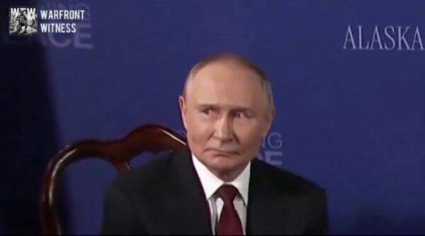 Estados Unidos, 15 de agosto de 2025. Vladimir Putin, presidente ruso, se encontró esta tarde con Donald Trump, mandatario de Estados Unidos, en Alaska para una reunión que busca soluciones en cuanto al conflicto entre Rusia y Ucrania. Sin embargo, antes de ese encuentro, se tomaron fotografías de ambos junto a sus asistentes y secretarios, de las cuales, usuarios de redes sociales circularon el rostro de Putin con muecas mientras posaba con Trump.