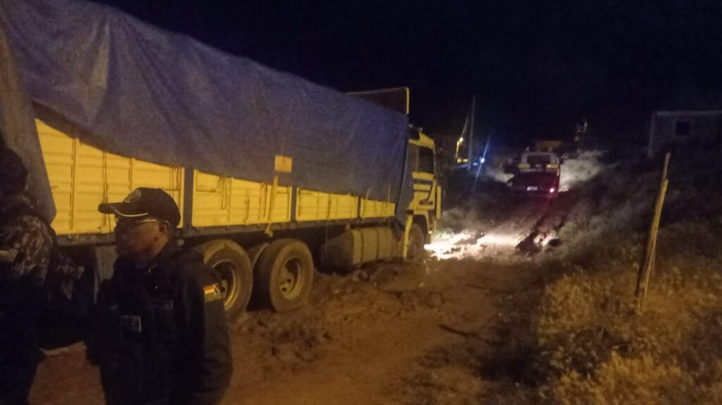 De acuerdo con el informe del operativo conjunto realizado el sábado 29 de marzo de la presente gestión, funcionarios de la Aduana Nacional realizaron una intervención en el barrio Belén, donde se verificó la presencia de una camión tipo Volvo con bolsas de harina y galones de aceite, que se presume son del contrabando.