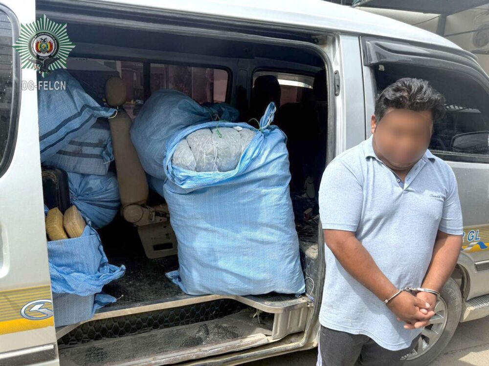 En un operativo preventivo ejecutado por los efectivos de la Fuerza Especial de Lucha Contra el Narcotráfico (Felcn), se logró la aprehensión de un ciudadano y el decomiso de un minibús que contenía 395 kilos con 550 gramos de marihuana, ocurrió en la zona de Pocpocollo, al este de la ciudad de Cochabamba.