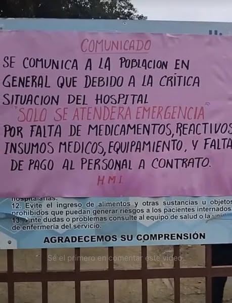 Fernando Matorra, secretario general del Sindicato de Trabajadores del Hospital Materno Infantil de Trinidad, denunció la crítica situación: «Estamos abandonados. Nuestras farmacias están en cero, no tenemos alimentación para pacientes y para el personal de salud que hace guardia». Matorra también señaló la inoperatividad del laboratorio y la falta de «servicuna» y otros recursos esenciales.