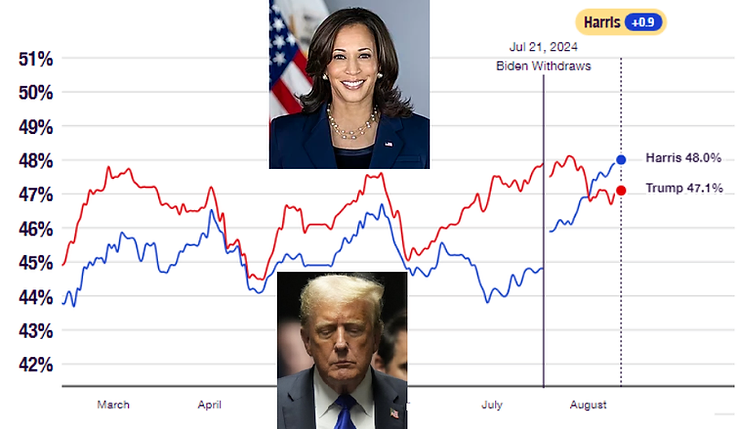 Así como Real Clear Politics le asigna una diferencia de 0,7% a favor de Harris en el promedio de las encuestas, FiveThirtyEight, otro de los principales sitios de análisis de sondeos, agranda esa brecha hasta 2,7 puntos: 46,1% de la demócrata contra un 43,4% de Trump. Según Julian Zelizer, profesor de la Universidad de Princeton, «el despliegue de la campaña demócrata ha atraído una atención continua, una cobertura positiva en los medios y, hasta ahora, ha superado momentos potencialmente divisivos con gran efecto».