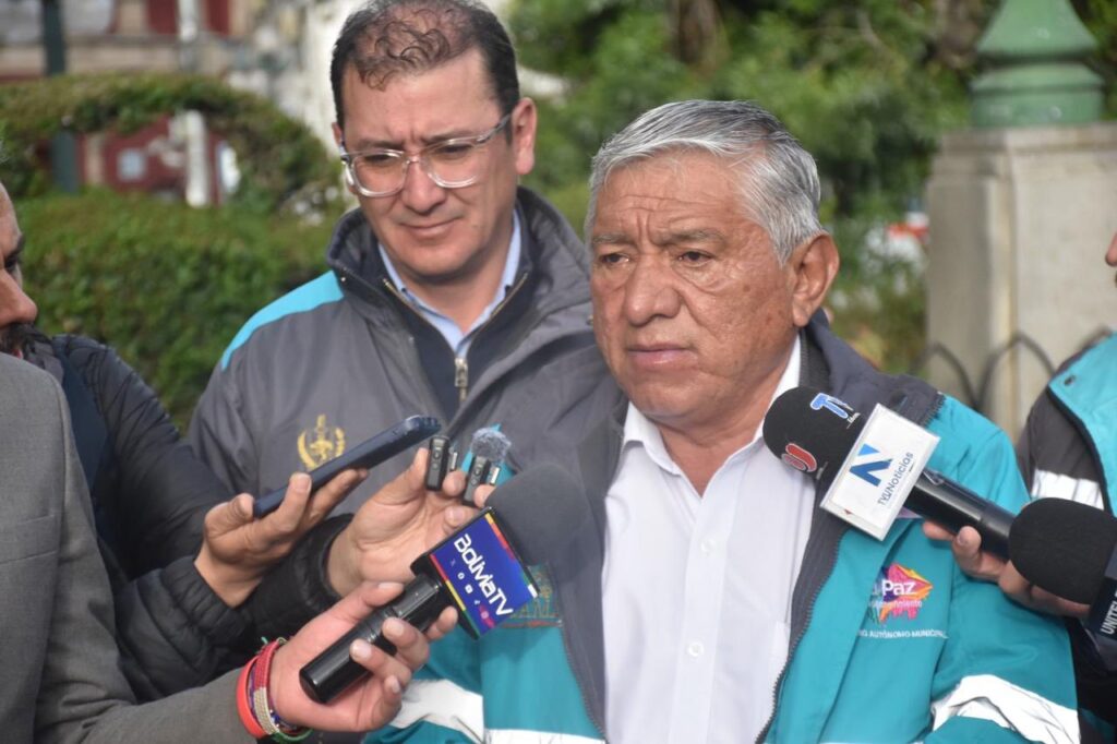La Paz, Bolivia, 4 de noviembre de 2025. La Alcaldía de La Paz ejecuta mantenimiento, ordenamiento y limpieza de la plaza Murillo, espacio patrimonial, para la realización del acto de transmisión de mando presidencial del 8 de noviembre.