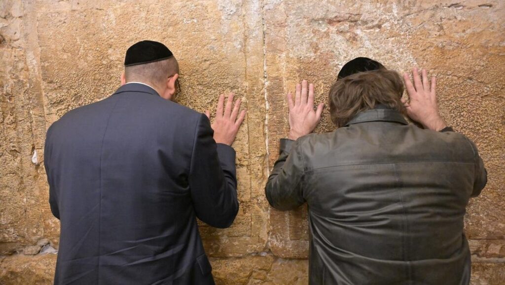 Milei acudió al Muro de las Lamentaciones, el lugar más sagrado para el judaísmo, apenas arribó la noche de este lunes a Israel, es una etapa más de su gira internacional, que hasta ahora lo ha llevado a Italia, al Vaticano, España y Francia.