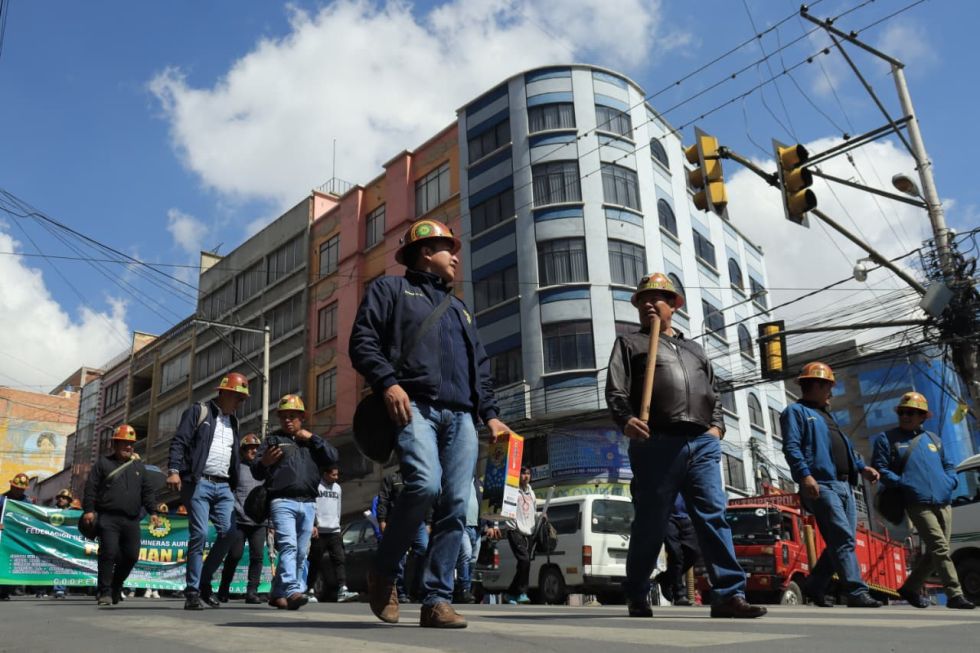Las delegaciones de mineros cooperativistas llegaron a La Paz de diferentes regiones del país, e iniciaron su marcha desde el límite con la ciudad vecina de El Alto hasta el centro de la ciudad que es la sede del Gobierno.