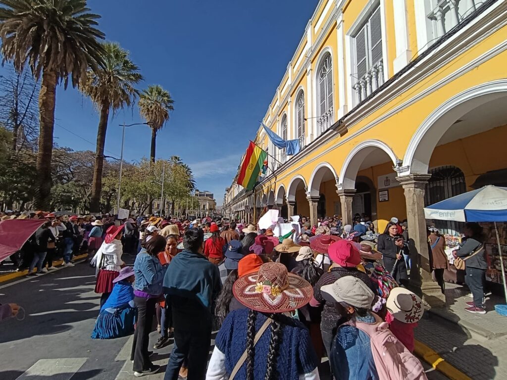 Cochabamba, Bolivia, 19 de agosto de 2025. Una masiva marcha de padres de familia de la zona sur de Cochabamba llegó este martes hasta puertas de la Alcaldía Municipal, exigiendo la ejecución de proyectos comprometidos, principalmente la construcción de unidades educativas en el distrito 9.