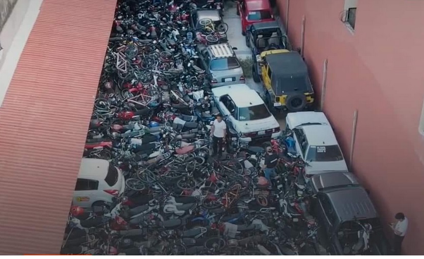 Un número incontable de motociclistas apiladas y almacenadas en un depósito ubicado en la calle Charcas en la ciudad de Santa Cruz de la Sierra fueron encontrados este miércoles por la Dirección de Prevención de Robo de Vehículos (Diprove).