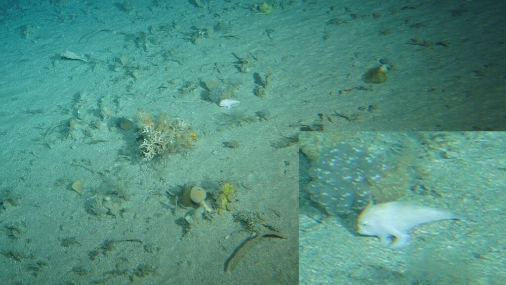 Este pez puede ‘caminar’ por el fondo marino usando sus aletas como si fueran pies. En las fotografías, se ve al espécimen blanco, casi fantasmal, con la cabeza roma y la cola ahusada.