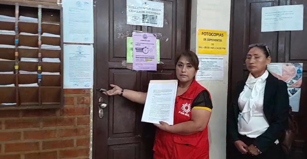 “Estamos aquí a primera hora, pero el juzgado está cerrado con candado”, declaró Nina ante los medios, señalando lo que considera una maniobra para impedir que formalice su personamiento como víctima en los procesos judiciales que enfrenta.